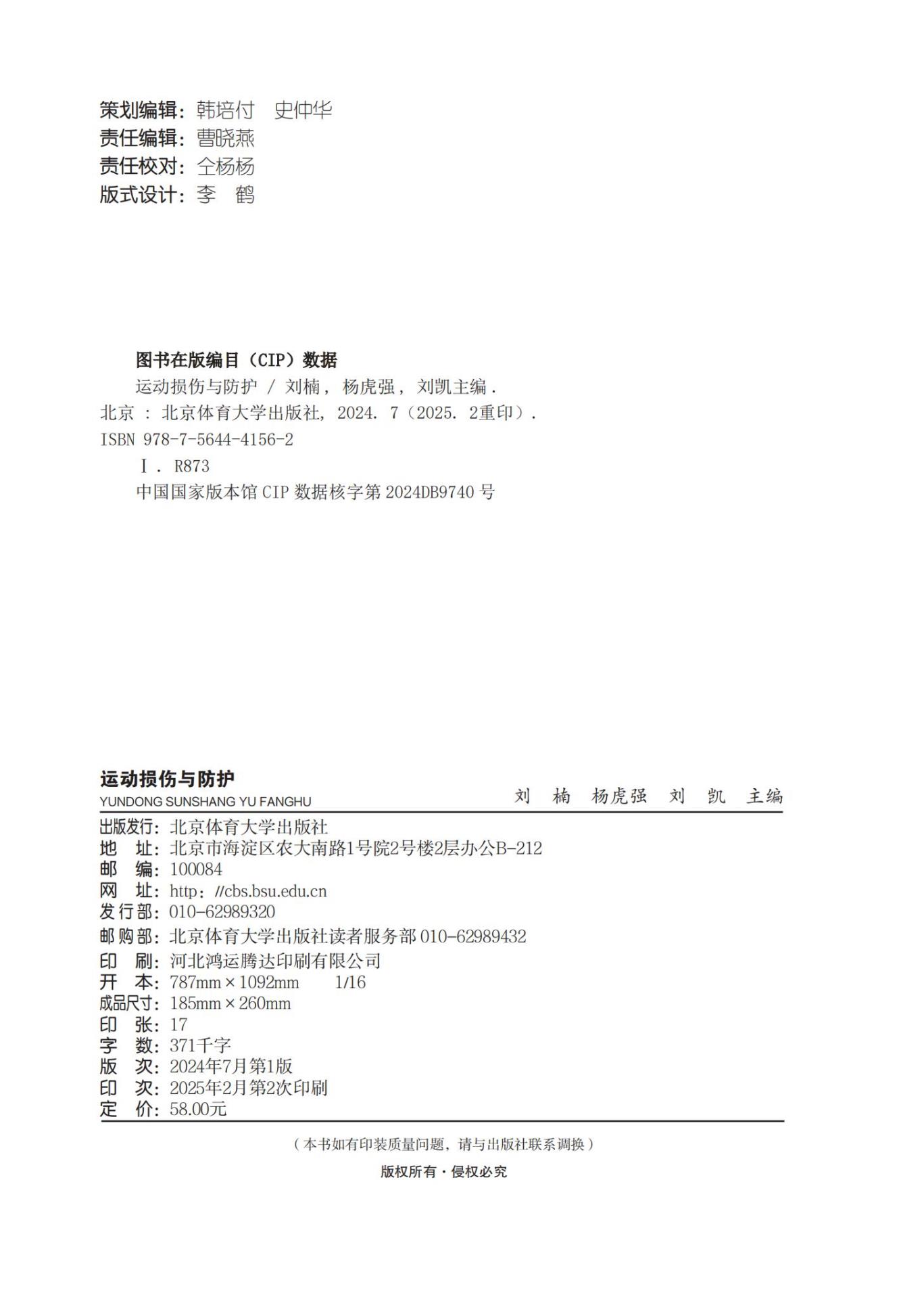 《运动损伤与防护》本教材由院校、行业、企业合作开发,共包括6个模块,每个模块包含多个任务,均有清晰模块导读和学习目标,每个任务包括情景导入、任务要求、任务说明、任务准备、任务实施、任务评价、思政园地板块。本教材围绕防护优先原则,介绍运动损伤与防护的基本原理、工作内容、技术手段;按照损伤救护流程,示范基本运动损伤救护技术和常见运动损伤处理方法;立足常见具体运动损伤,分析损伤原理,讲解评估方法,串联训练思路,展示贴扎技术,总结生活管理。