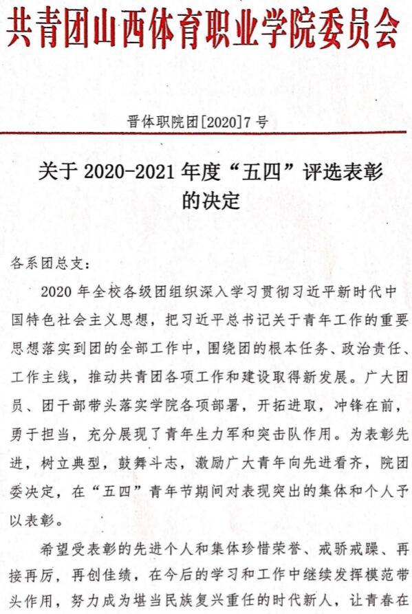 红足一1世足球网官方网站2020—2021年度五四评选表彰决定