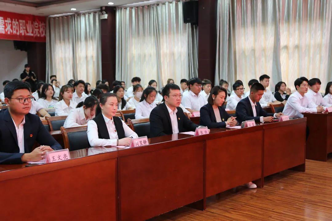 院党委书记陈洁,党委委员、副院长王志勇,党委办公室主任张志平,团委副书记郭蓉蓉出席了会议,各系团总支书记、受表彰学生代表以及2023年新发展团员代表参加了会议,大会由副院长王志勇主持。