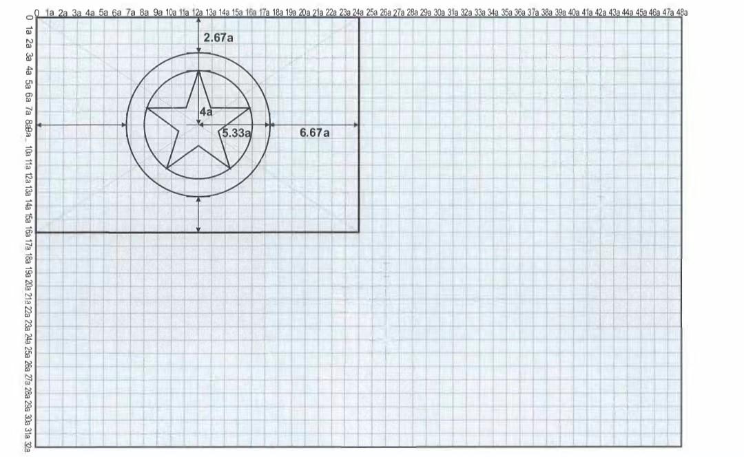 团旗尺寸坐标图(按与通用规格边长最小尺寸1:2的比例)