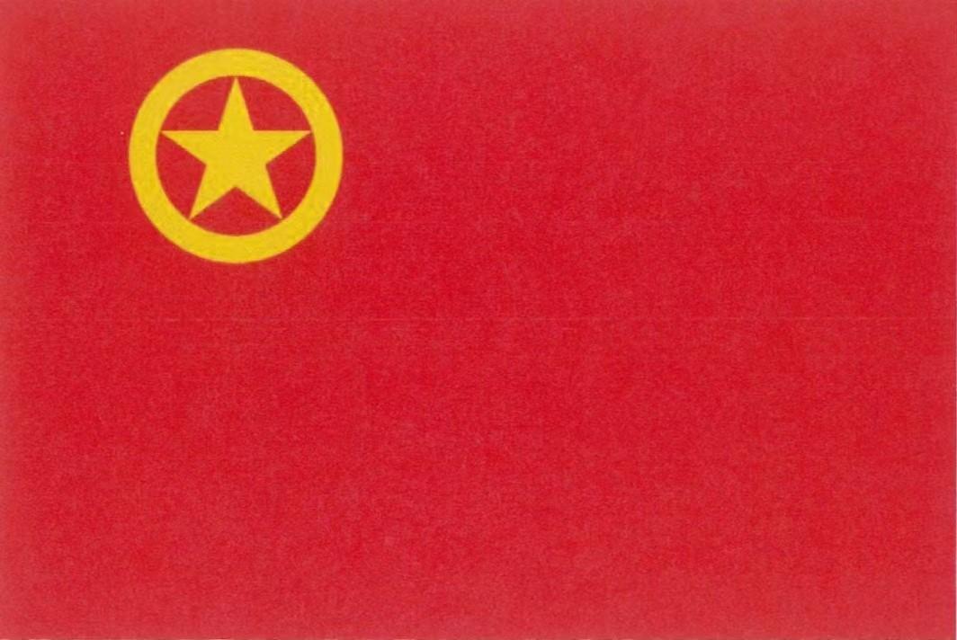 第四条 中国共产主义青年团团旗旗面为红色, 象征革命胜 利;左上角缀黄色五角星, 周围环绕黄色圆圈, 象征中国青年一 代紧密团结在中国共产党周围。