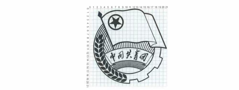 它的圆圈、旗边、旗杆、齿轮、麦穗、初升的太阳及其光芒。 "中国 共青团 “ 五个字为金色。 红为正红, 金为大赤金。 “中国共青 团 ” 字体为毛体。