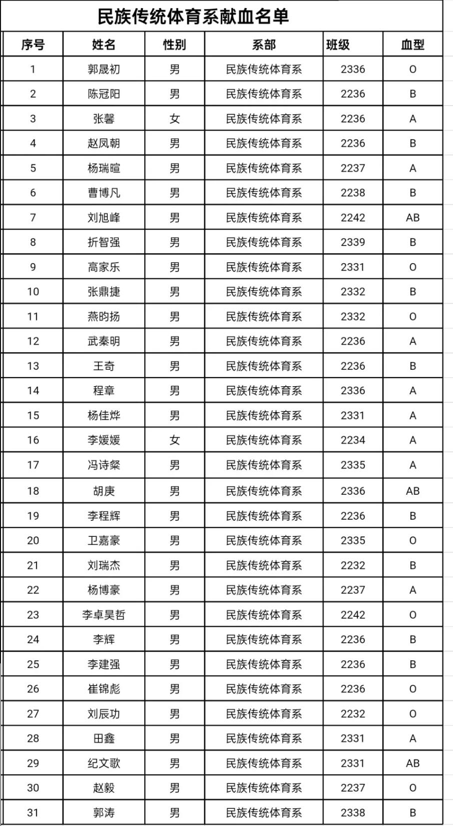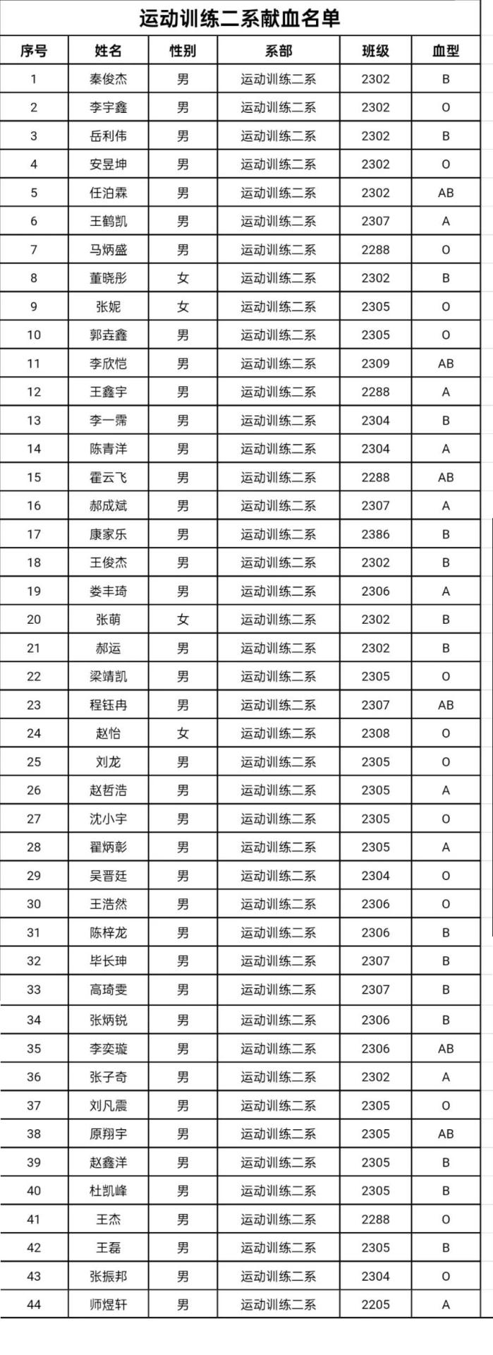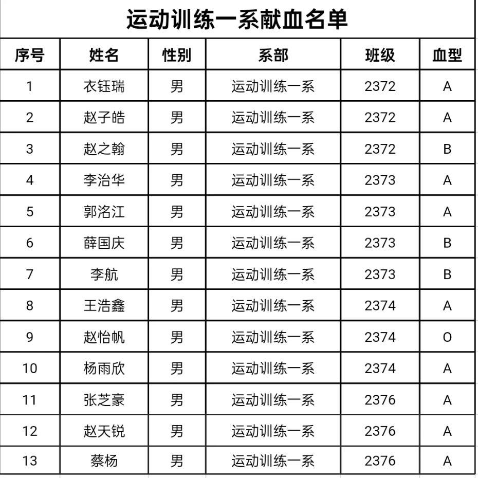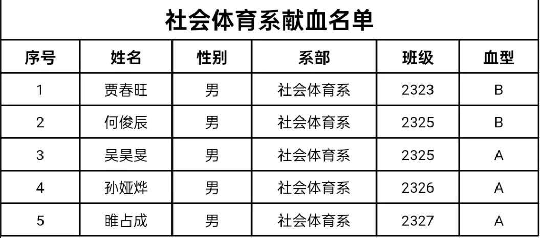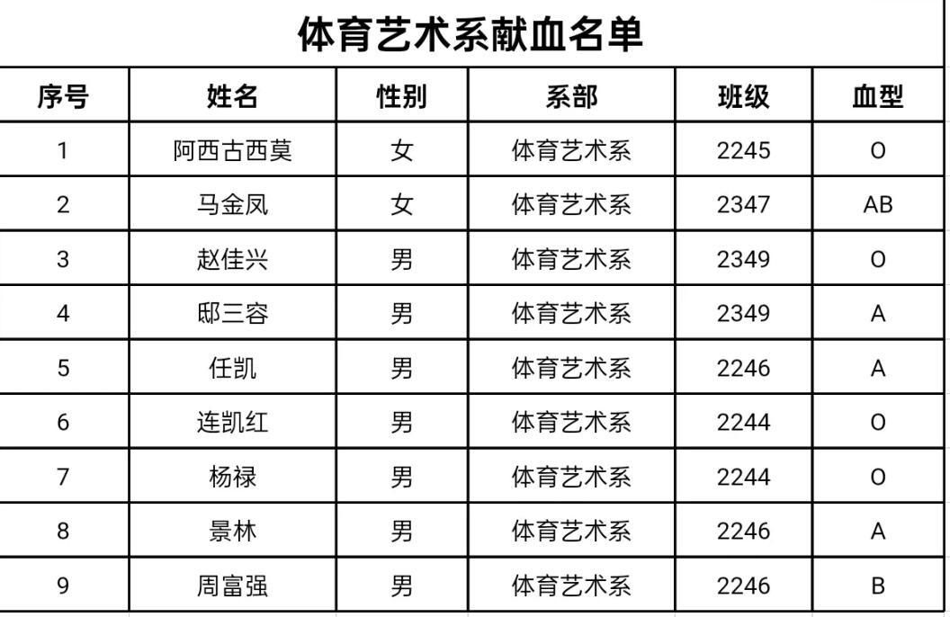 附:无偿献血学生名单