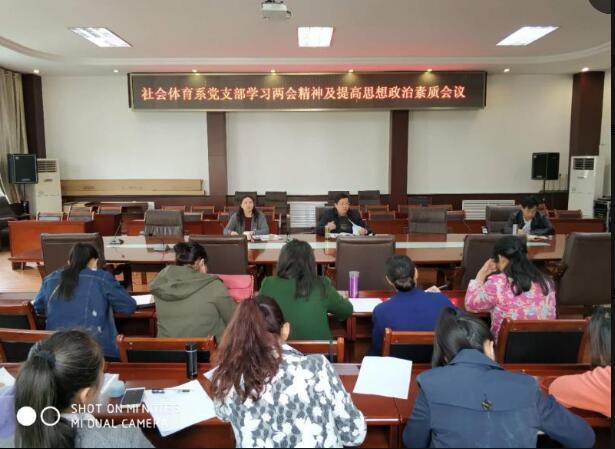 会议主要内容:一是深入学习2018“两会”精神。二是传达中共中央国务院“关于全面深化新时代教师队伍建设改革的意见”。社会体育系党支部书记王艳萍在会上解读了习近平总书记的“十大金句”;强调要坚持以习近平新时代中国特社会主义思想为指引,不断提高思想政治地位,始终把加强党的建设和提高思想政治觉悟作为重中之重,深入学习宣传和贯彻党的十九大精神,特别是要打造一支高素质专业化创新型教师队伍,落实立德树人的根本任务,着力提升社会体育系教师思想政治素质,全面加强师德师风建设。