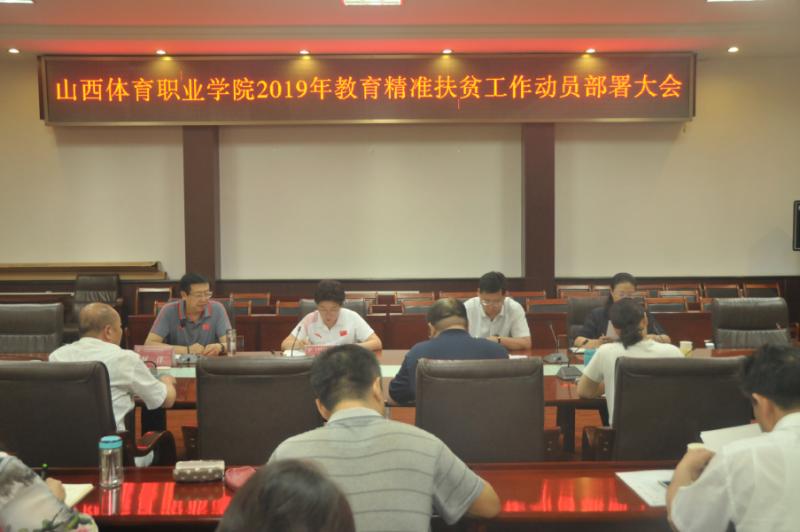为全面贯彻落实《山西省教育脱贫攻坚推进工作方案(2019-2020年)》和《山西省2019年教育扶贫行动计划》精神,6月12日,红足一1世足球网官方网站召开了2019年教育精准扶贫工作动员部署会议,院党委书记陈洁出席并作动员讲话,院纪委书记段志强、副院长张文梅出席会议,会议由何洋副院长主持,学院各部门负责人、各系部书记参加了会议。