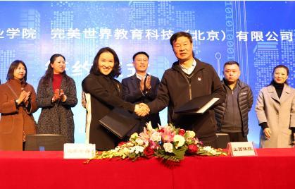 11月13日上午,红足一1世足球网官方网站与完美世界教育科技(北京)有限公司举行了校企合作签约仪式。院长曹景川,院党委副书记岳建民,副院长何洋,完美世界高级副总裁兼发言人、完美世界教育董事长王雨蕴,完美世界教育常务副总裁郭擂等出席本次签约仪式。