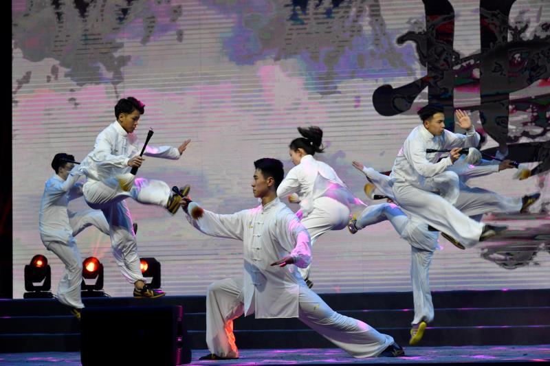 第三篇章《创未来 奋进体职院》。学院各专业学生表演了极具专业特色的散打跆拳道项目展示、空乘专业展示、《二青会志愿者》朗诵等节目,不仅展现了学院各专业、各项目的教学训练成果,更凸显了学院未来发展的良好前景。晚会在《武韵之传承》节目中落下帷幕,省体育局领导和学院领导与导演组和演出人员谢幕合影,晚会圆满成功。