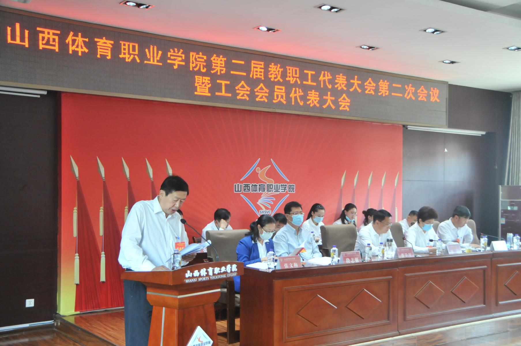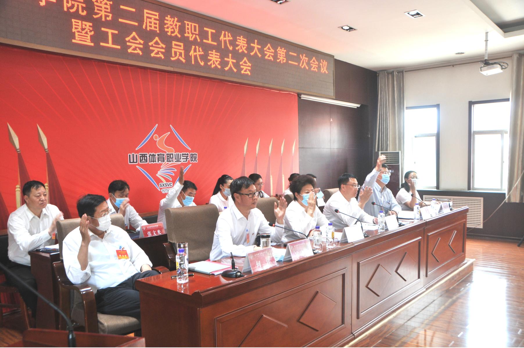 下午,大会举行闭幕式。表决通过了二届二次教代会关于院长工作报告的决议草案、关于财务工作报告的决议草案和关于工会工作报告的决议草案。审议通过山西体育职业 学院工会主席任免,增补学院教代会主席团成员、工会委员会委员等事项。工会副主席刘智浩作了提案工作报告。