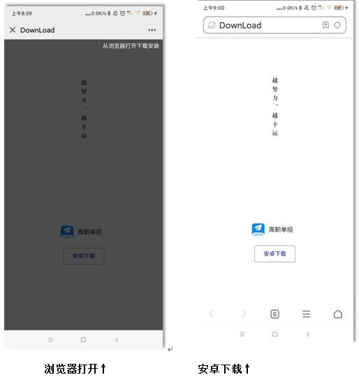 2.识别后,点击右上角浏览器打开,点击安卓下载,安装完成后,按照下面流程进行操作。