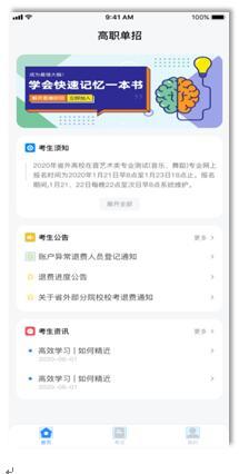 5.【首页】可查看学校的考生须知,考生公告,考生咨询。