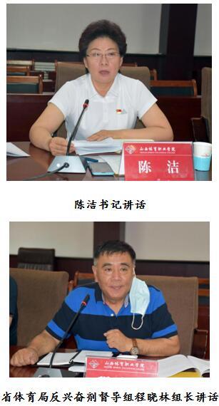 陈洁书记在讲话中指出:学院召开反兴奋剂工作会议,是深入贯彻落实党中央、国务院关于反兴奋剂工作的有关精神,贯彻落实习近平总书记关于反兴奋剂讲话、批示精神,落实省体育局反兴奋剂工作会议精神的具体措施,很及时、很必要、很重要!