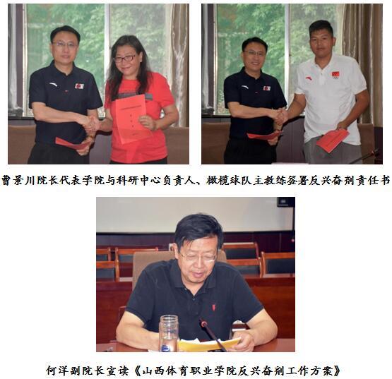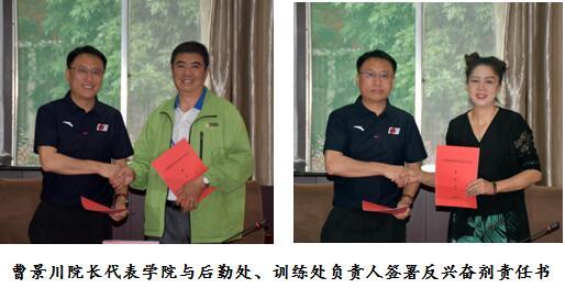 会议首先由何洋副院长宣读《红足一1世足球网官方网站反兴奋剂工作方案》,《方案》中对反兴奋剂工作领导机构、工作措施、工作任务清单等进行了明确的规定。曹景川院长代表学院与训练处、后勤处、科研试验中心、橄榄球队分别签署反兴奋剂工作责任书。