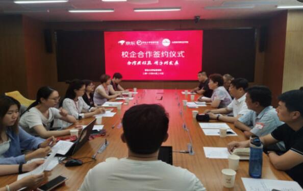 6月20日,学院党委书记陈洁、副院长何洋等一行六人赴北京对京东集团总部进行了实地考察,并与京东大学电商学院正式签署了校企合作战略协议。京东大学电商学院院长施蕾及相关部门负责人出席了签约仪式。