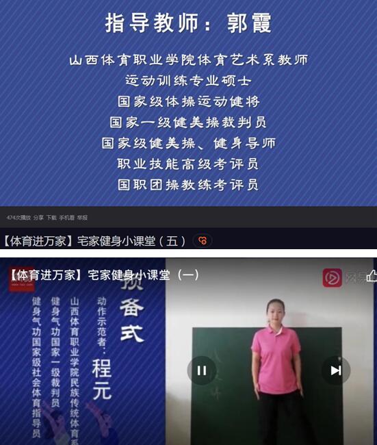 教师程元拍摄制作的八段锦、教师李竞媛指导学生龙宇涵拍摄制作的趣味减脂操在100期点击量分列第3位及第7位,单节课点击量超过20万。教师许薇娜制作的普拉提之协调与平衡训练、收腰提臀训练,教师李竞媛指导学生陈晶晶拍制作的趣味减脂操点击量进入前五十名,收到群众和有关单位的欢迎和好评。