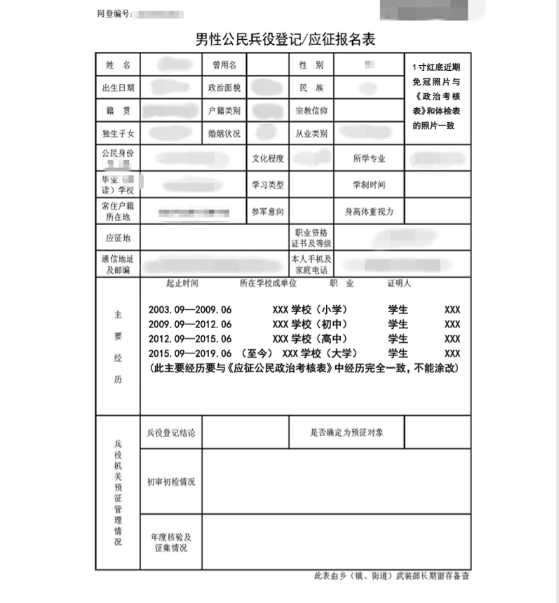(二)户籍地应征:学生持《应征报名表》和《大学生预征对象登记表》至户籍地兵役机关报名应征参检。