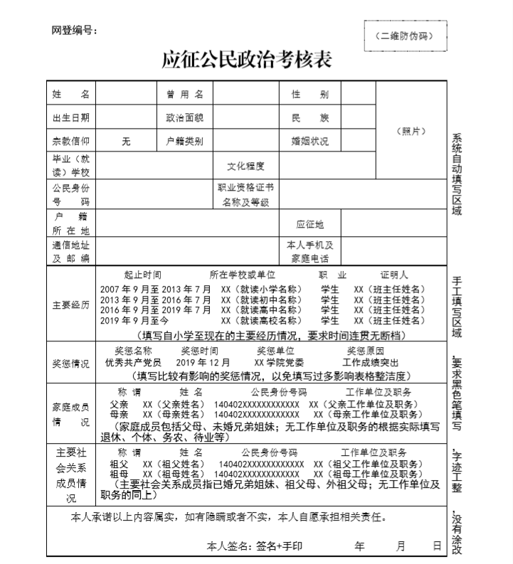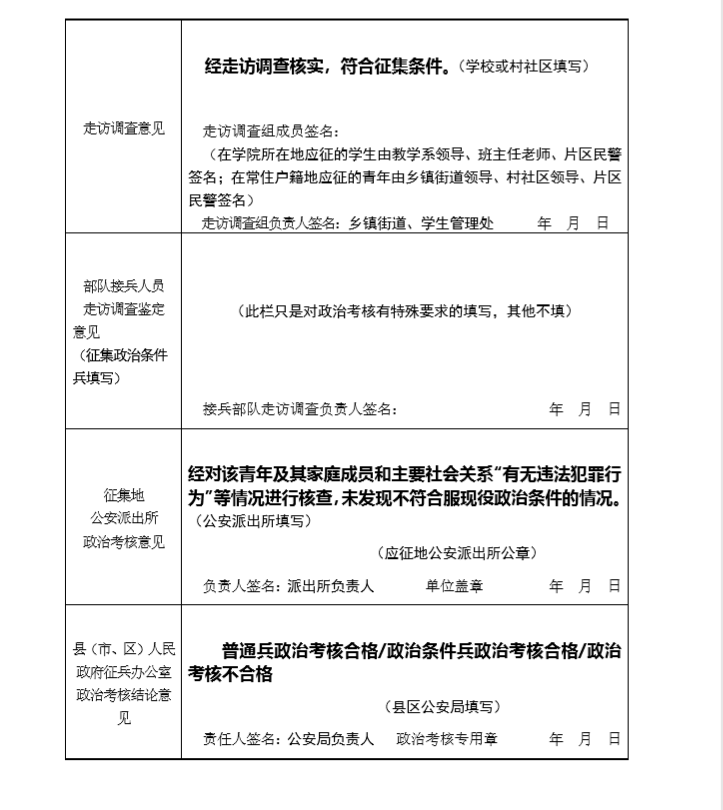 1. 《应征公民政治考核表》填写规范见《应征公民政治考核表》式样;