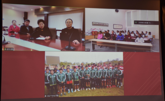 按照学院疫情防控常态化要求,为更好的激励远在海南冬训的女子足球和橄榄球队,2021年2月10日上午,院党委书记陈洁、党委副书记岳建民、副院长张文梅通过视频连线的方式深切表达了院党委的真诚问候,把满满的爱和殷切的期望传递到了每个外出冬训的教练员和运动员心间。