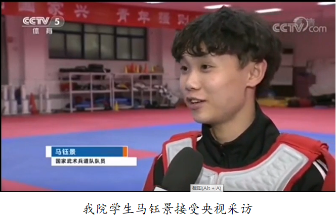 在此次国家武术兵道队的集训中,我院学生马钰景作为山西队队员表现优异,承担了规则及裁判法的示范展示,并多次被选为集训中重要实战汇报展演的出场队员(个人赛、团体赛)。同时,由于在集训期间表现突出,代表国家武术兵道队优秀运动员接受了中国中央电视台的采访。在集训结束时,经国家武术兵道队教练组的综合研讨,最终我院学生马钰景被评为“国家武术兵道队优秀运动员”。