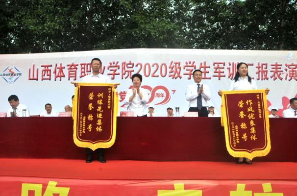 在分列式与军事训练科目表演中,各方队英姿飒爽、昂首挺胸、口号嘹亮,依次通过大会主席台。男子挎抢方队变换展示了平行四边形、三角形、菱形等多种列队图形;女子方队的内务整理展现了学生良好的精神风貌;刺杀操表演方队,及时准确地完成了教官的指令,动作整齐,反应迅速,喊声震天,豪气干云,不时赢得全场阵阵的喝彩声。军体拳方队依次摆出“中国”“山西体职院”“1921”“1949”“1978”“2021”“七一(100)”以及国旗、党旗和祖国版图等多组造型,向党的百年华诞献礼。