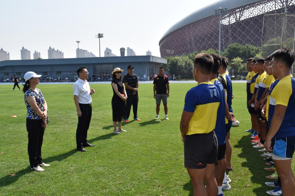 2021年7月14日上午,曹景川院长百忙之中专程前往山西体育中心,慰问正在紧张备战第十四届全运会决赛阶段比赛的学院橄榄球队,张文梅副院长陪同慰问。