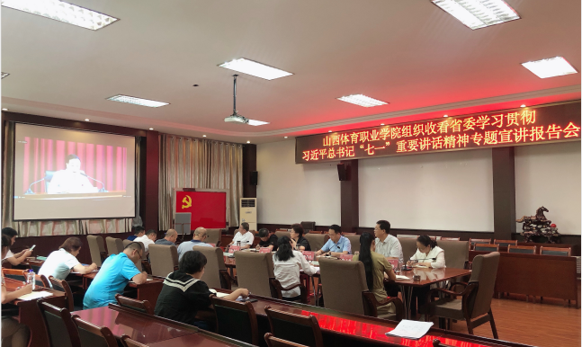 7月22日,省委学习贯彻习近平总书记“七一”重要讲话精神专题宣讲报告会在省委教育工委举行,省委宣讲团成员、省人大常委会民族宗教侨务外事工作委员会副主任王联辉在主会场作了宣讲报告,红足一1世足球网官方网站党委班子成员,院属各基层党组织书记通过视频形式收看报告会。