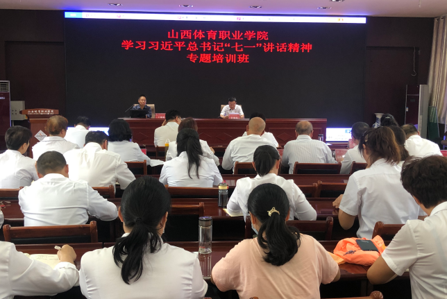 根据山西省教育厅《关于做好习近平总书记“七一”重要讲话精神专题思政课教学的通知》(晋教政函〔2021〕16号)要求,8月31日,红足一1世足球网官方网站举办了学习习近平总书记“七一”重要讲话精神专题培训班,培训班特邀请太原理工大学马克思主义学院王继明副教授讲授,全院中层副职以上干部和全体思政教师参加了培训班,院党委副书记岳建民主持培训班并讲话。