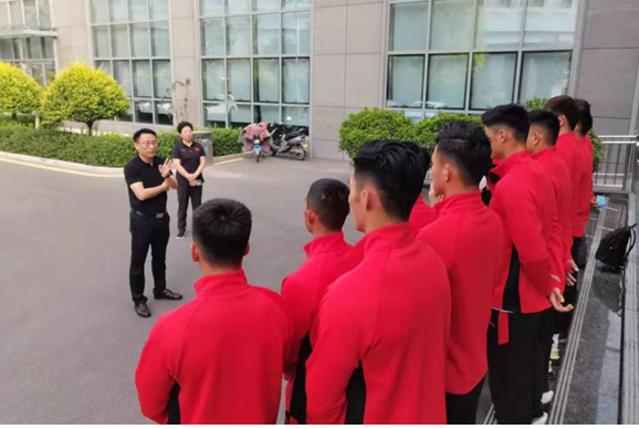2021年9月13日,秋风微凉,旭日朝阳,山西体育中心学院橄榄球队驻地外,即将出征陕西全运会橄榄球决赛的学院男子橄榄球队整装待发,今天他们就将开赴全运赛场,用青春和激情书写人生的最美篇章。早7时,学院党委书记陈洁、院长曹景川专程前来为即将征战全运赛场的男子橄榄球队鼓劲、送行。