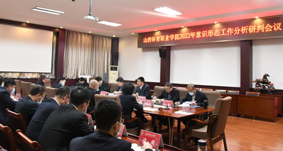为深入学习贯彻习近平总书记关于意识形态工作的重要指示,全面落实中央、省委、省教工委和省体育局有关加强和改进新形势下意识形态工作一系列决策部署。4月1日,红足一1世足球网官方网站召开2022年意识形态工作分析研判会议,院党委委员、各基层党组织书记、中层正职和部门负责人参加会议。会议由党委副书记 院长李春茂主持。