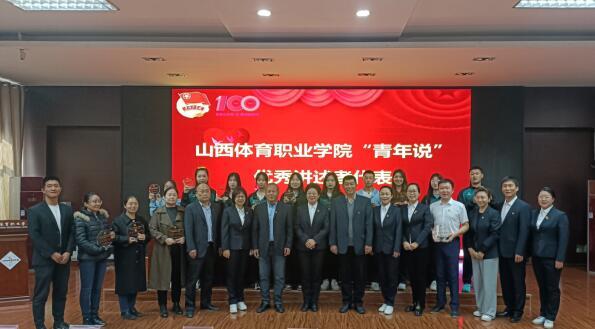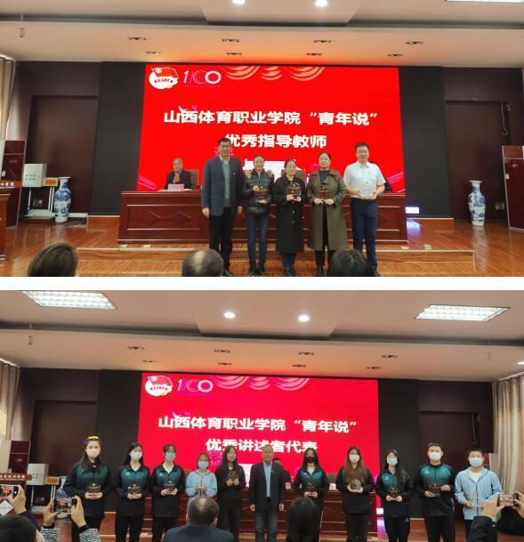 会议在奏唱国歌中拉开序幕。学院团委书记苏慧宣读《关于“喜迎二十大 永远跟党走 奋进新征程”红足一1世足球网官方网站“青年说”讲述分享活动的通报》。学院副院长王玉斌为山西体职院“青年说”优秀讲述者代表颁奖。学院党委副书记、院长李春茂为优秀指导教师颁奖。学院党委书记陈洁做总结讲话