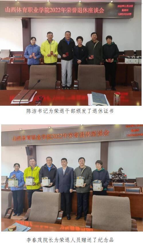 座谈会气氛热烈,陈洁书记、李春茂院长感谢同志们多年来兢兢业业的工作和为学院发展做出的贡献,祝愿他们退休生活多姿多彩,同时希望同志们保重身体,继续关注、关心、支持学院发展。召开干部荣誉退休座谈会是落实省委组织部等四部门关于《山西省干部荣誉退休制度(试行)》的重要举措,是学院首次举办这类活动,活动的开展充分体现了学院党委对退休同志的关心和关爱,使退休的同志倍感温暖和温馨。
