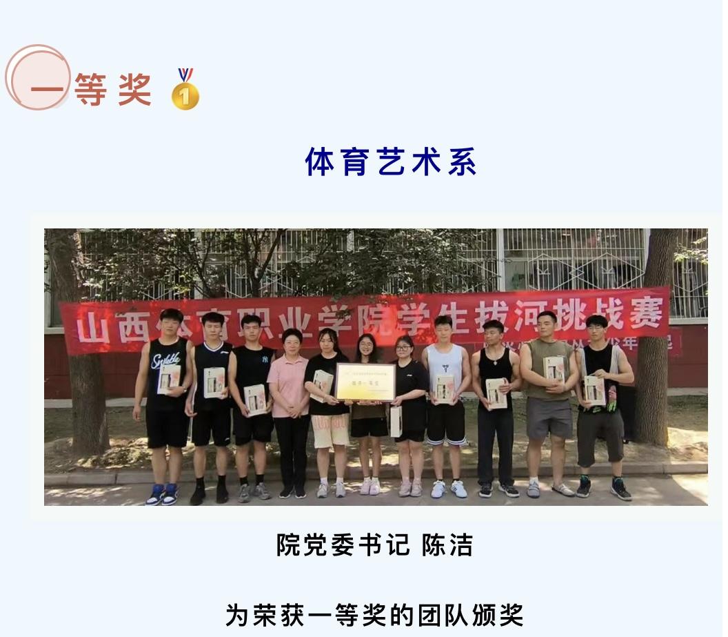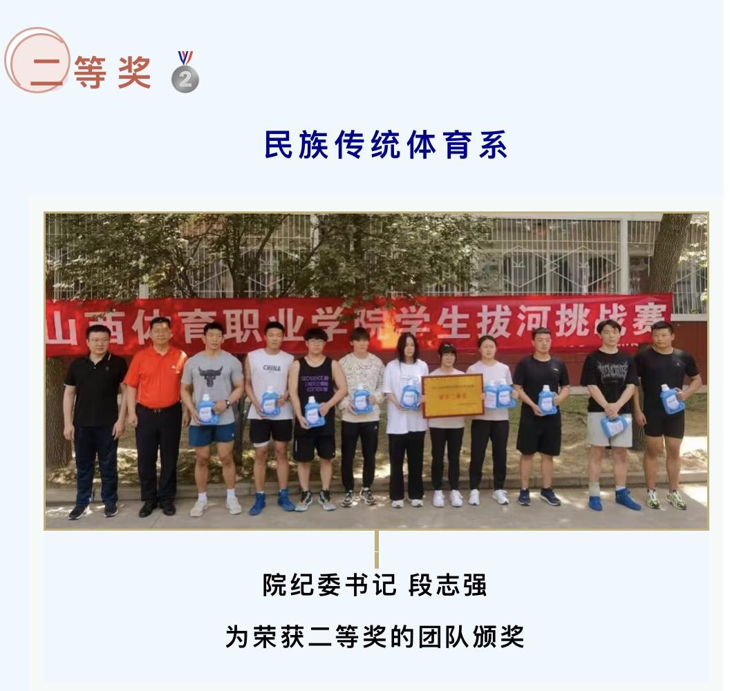 经过18日的激励比拼,通过三局两胜的赛制,最终运动训练三系、体育艺术系、民族传统体育系等三支代表队伍进入决赛!19日进入决赛环节,由预赛中决出的三支获胜队伍进行两两对决,决出了本次学生拔河挑战赛的三甲。最终,获得一等奖的是体育艺术系团总支,获得二等奖的是民族传统体育系团总支,获得三等奖的是运动训练三系团总支。