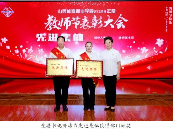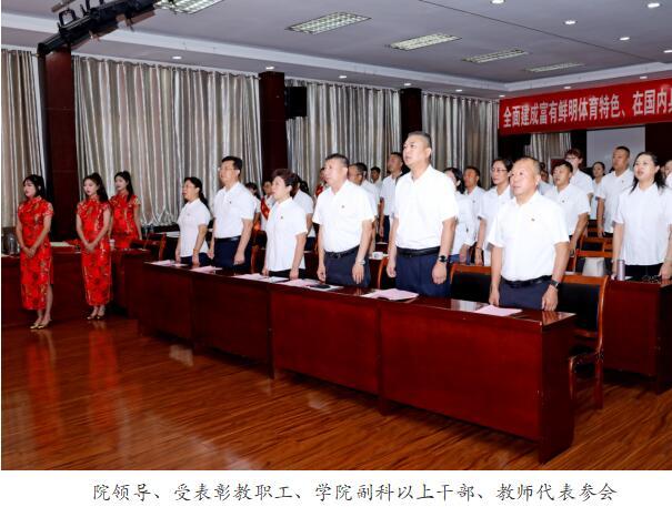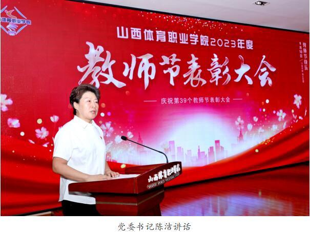 陈洁书记指出学院的发展成果是全体教职工创造的,学院一切发展成果都归功于每一个体院人。教育的发展对教师提出了更高的要求,好教师是学校的名片、学校人才培养水平的保证,也是学生仰慕的对象和增强课堂吸引力的磁石。她代表学院对全体教职工提出三点希望。一是立足“传好道”,做学生的筑梦人。希望全院教职工,要坚定理想信念,忠诚于党的教育事业、忠诚于人民,以教书育人为崇高的职责,满腔热血育英才,自觉把党的教育方针贯彻到人才培养全过程,把坚持以生为本贯穿到每个工作环节,用我们的真诚、真心、真情,共同支撑起这份用心灵陪伴心灵、用青春点燃青春、用梦想照亮梦想的事业。二是牢记“授好业”,做知识的传播者。希望我们学院每一名教师、教练,都能认真钻研业务,不断增强自己的专业素质,更新自己的教育观念,提升自己的专业水平,拓展自己的专业领地,完善自己的专业行为,提高教育教学实践能力,炼就自身独到的教学艺术。三是善于“解好惑”,做成长的引路人。全体教职工要自觉践行社会主义核心价值观,明确师德底线,努力成为有理想信念、有道德情操、有扎实学识、有仁爱之心的好老师,着力培养德智体美劳全面发展的社会主义建设者和接班人。以德立身,以德立学,以德施教,真正做到学高为师,身正为范。
