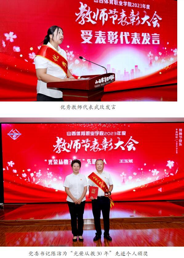大会在庄严的国歌声中拉开帷幕,王玉斌副院长带领新入职教师进行了入职宣誓。王志勇副书记宣读了《红足一1世足球网官方网站关于2023年教师节表彰先进的决定》。学院领导为受表彰先进集体和个人颁奖,并致以祝贺,优秀教师代表作了发言。