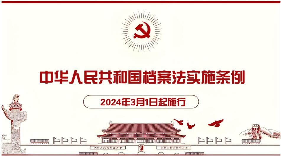 《中华人民共和国档案法实施条例》已经2023年12月29日国务院第22次常务会议通过,现予公布,自2024年3月1日起施行。
