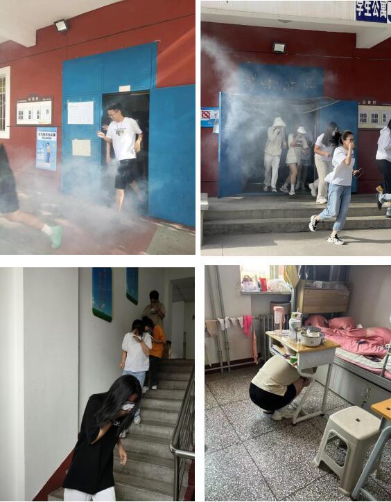 学生们在教官和学生干部的引导下,迅速按照预定路线进行疏散。他们弯腰低头、用湿毛巾捂住口鼻,有序地撤离到指定的安全区域。整个过程中,师生们保持冷静,听从指挥,没有出现恐慌和混乱的情况。