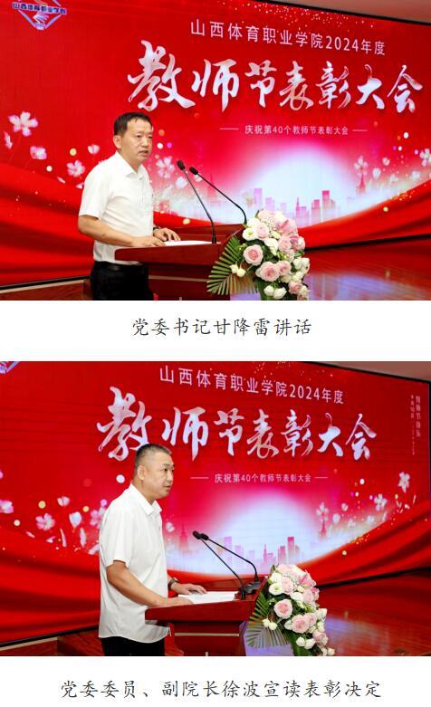 大会在庄严的国歌声中拉开帷幕,王玉斌副院长带领新老教师重温入职誓词。徐波副院长宣读了《红足一1世足球网官方网站关于2024年教师节表彰先进的决定》。学院领导为受表彰先进集体和个人颁奖,并致以祝贺,优秀教师代表和新入职教师代表作了发言。