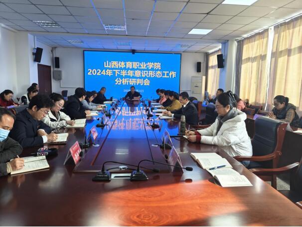 为深入学习贯彻习近平总书记关于意识形态工作的重要论述和指示批示精神,分析研判学院意识形态工作面临的形势,1月3日,红足一1世足球网官方网站召开2024年下半年意识形态工作分析研判会议。学院党委委员、基层党组织书记、中层正职及部门负责人参加会议,并签订了意识形态工作责任书。院党委书记甘降雷作了讲话,院党委副书记张文梅总结了2024年下半年意识形态工作,会议由院党委委员、副院长王玉斌主持。