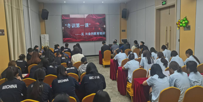 动员会结束后,为进一步强化反兴奋剂教育宣传工作,学院组织开展以反兴奋剂培训为题的“冬训第一课”,从冬训工作第一阶段,牢固树立底线思维,切实“入脑入心”,徐波副院长强调,各参训队伍务必把学好“冬训第一课”作为冬训首要任务,做到“开好头、收好尾”,把反兴奋剂工作贯穿到冬训备战的各个环节,切实保证每名参训人员“拿干净的金牌”。