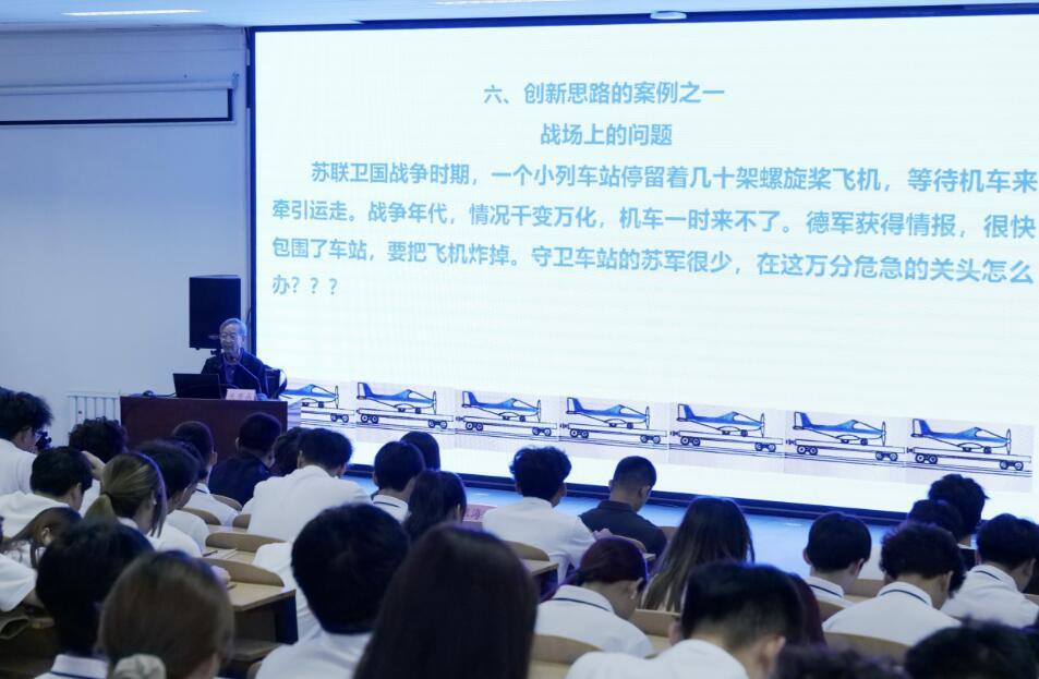 关教授以“路”为引,巧妙切入“创新思路”主题,系统介绍了发明创造的26种思路,深入阐述发明与发现的内在关联,同时以生动鲜活的案例细致解读了科学创新的 “八想”及其重要意义。关教授智慧聪颖、幽默风趣的演讲风格和严谨的论述让大家受益匪浅,他鼓励同学们要想前人未想、要做前人未做,成为一个敢想敢做的社会主义新青年。