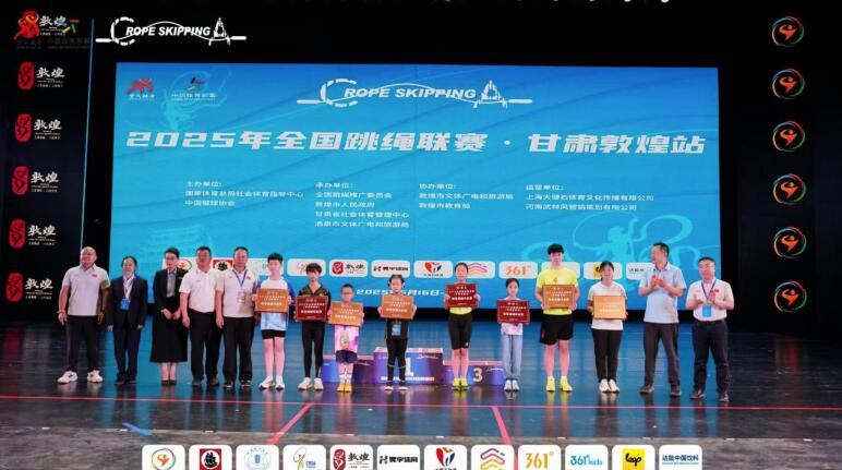 近日,2025年全国跳绳联赛(甘肃敦煌站)在丝路明珠敦煌市圆满落幕,在本次比赛中,我院跳绳队学生胡佳玉、张一丹、刘祥、杨鑫瑶在30秒单摇U18组别中获得一金、两银、一铜的好成绩,张敏老师被授予优秀教练员奖,学院被授予体育道德风尚奖。