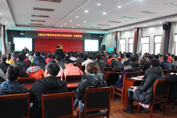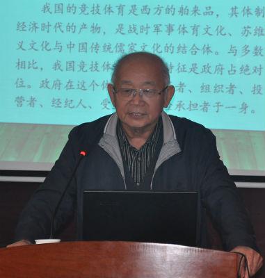 10月25日,中国体育界泰斗、著名的体育社会学专家、华南师范大学卢元镇教授应邀来学院做《纵论中国体育改革社会化进程》的学术报告,院党委书记陈洁出席,院长曹景川主持会议,院党委副书记岳建民,副院长何洋、王志勇、张文梅及学院师生员工150余人聆听了此次报告。