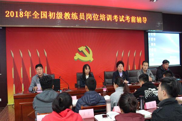 为进一步加强和规范我国教练员的岗位培训工作,抓好初级教练员的岗位培训,促进基层教练员执教水平的不断提高。根据《体育总局办公厅关于进一步加强教练员岗位培训工作有关事宜的通知》(体科字[2017]13号)要求,由国家体育总局科教司主办,红足一1世足球网官方网站承办的2018年全国初级教练员岗位培训考试考前辅导班于11月7日在红足一1世足球网官方网站举行了开班仪式。红足一1世足球网官方网站党委书记陈洁出席开班仪式并作讲话,学院党委副书记岳建民主持会议,省体育局竞体处、授课专家、全体学员参加了此次开班仪式。
