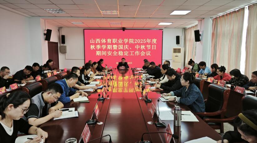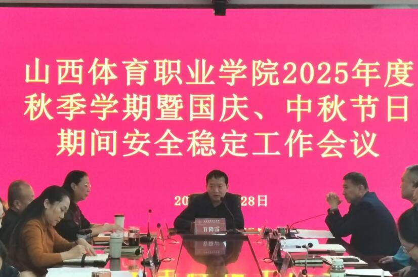 为认真贯彻落实省教育厅、省体育局关于安全稳定的部署要求,进一步压实安全责任、落实安全防范措施,防范和遏制秋季学期特别是国庆、中秋两节期间涉校涉师生安全事故发生,确保学院安全有序,9月28日上午,学院召开2025年度秋季学期暨国庆、中秋期间安全稳定工作会议。院领导、各部门、各系部负责人、基层组织书记参加了会议。会议由党委副书记、院长王志勇主持。