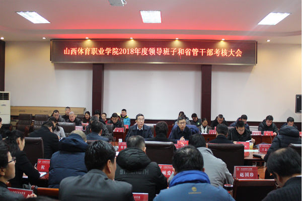 1月28日,省体育局考核组组长,省体育局党组成员、副局长袁乃平率队到山西省体育职业学院,对学院2018年度各项工作任务完成情况、领导班子运行情况以及省管干部综合表现情况等进行综合考核。红足一1世足球网官方网站党委书记陈洁,院长曹景川,院班子成员、中层正职干部(部门负责人)和副高以上专业技术人员参加会议。
