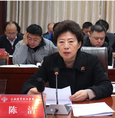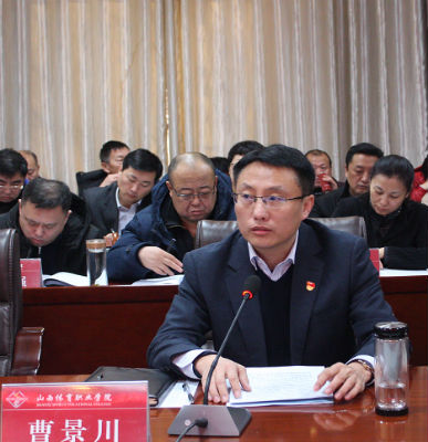 陈洁代表学院党委领导班子作了2018年度目标责任考核领导班子述职报告。2018年学院领导班子高举习近平新时代中国特色社会主义思想伟大旗帜,全面贯彻党的十九大精神和习近平总书记视察山西重要讲话精神,扎实推进落实省委十一届六次、七次全会精神,树牢“四个意识”,坚定“四个自信”,践行“两个维护”;举旗定向、担当实干、廉洁奉公、攻坚克难,始终全面贯彻党委领导下的校长负责制,依法治校;始终全面抓好党建和反腐工作,严风肃纪;始终全面促进学院各项事业健康发展,科学谋划。各项工作都取得了良好成效,圆满完成了省委、省政府和省局党组下达的年度任务目标。会上,陈洁、曹景川分别做了2018年度个人述职。