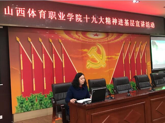 11月23日上午,民族传统体育系的全体教师和学生在三楼会议室举行了学习领会党的十九大精神宣讲报告会。报告由我院十九大精神宣讲团成员高宝珍老师为大家宣讲。