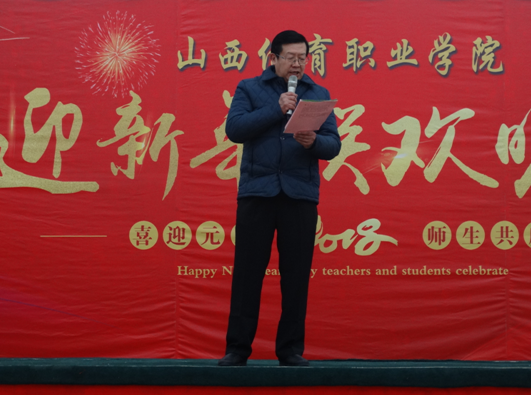 接着副院长何洋代表学院领导班子对全院师生致以亲切的问候和诚挚的新年祝福。他在肯定了2017年取得的成绩的同时,对我院2018年寄予了新的希望,希望每一位体院人都应该一如既往,面对困难笑着走,面对机遇不错失,面对发展有信心,共同努力将我院建设成为全省一流的高等体育职业学院。