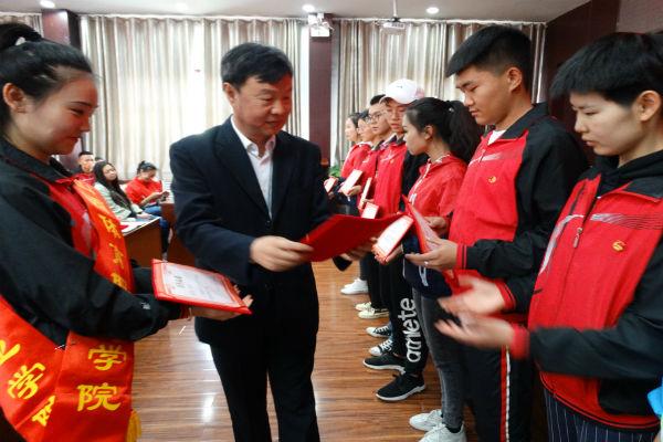 在颁奖环节,获得集体和个人表彰的师生纷纷上台领奖,在团员青年们满怀决心和热情的掌声中、在奋发激昂的团歌中,学院“五四”表彰大会圆满结束。