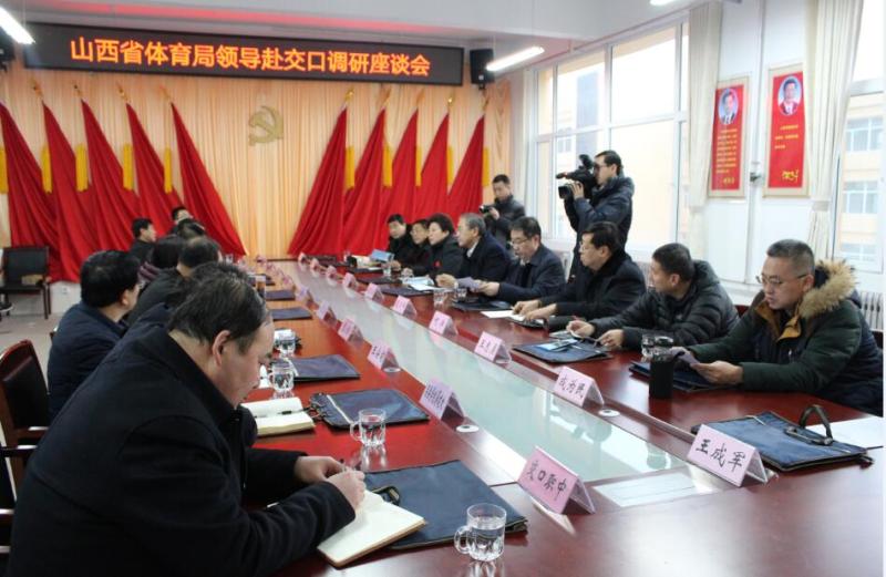 1月24日,省体育局党组书记 局长赵晓春、副巡视员袁乃平,在体职院党委书记陈洁和领导班子等人员陪同下赴吕梁市交口县开展教育精准扶贫调研活动。