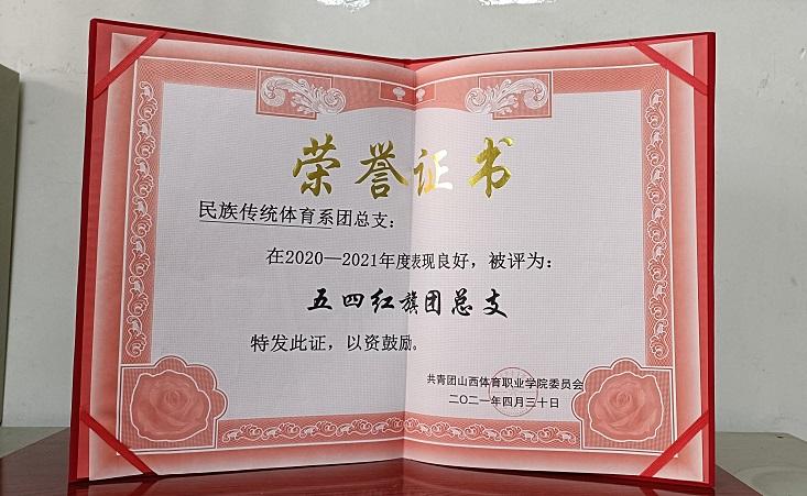 民族传统体育系被评为2020-2021年度五四红旗团总支